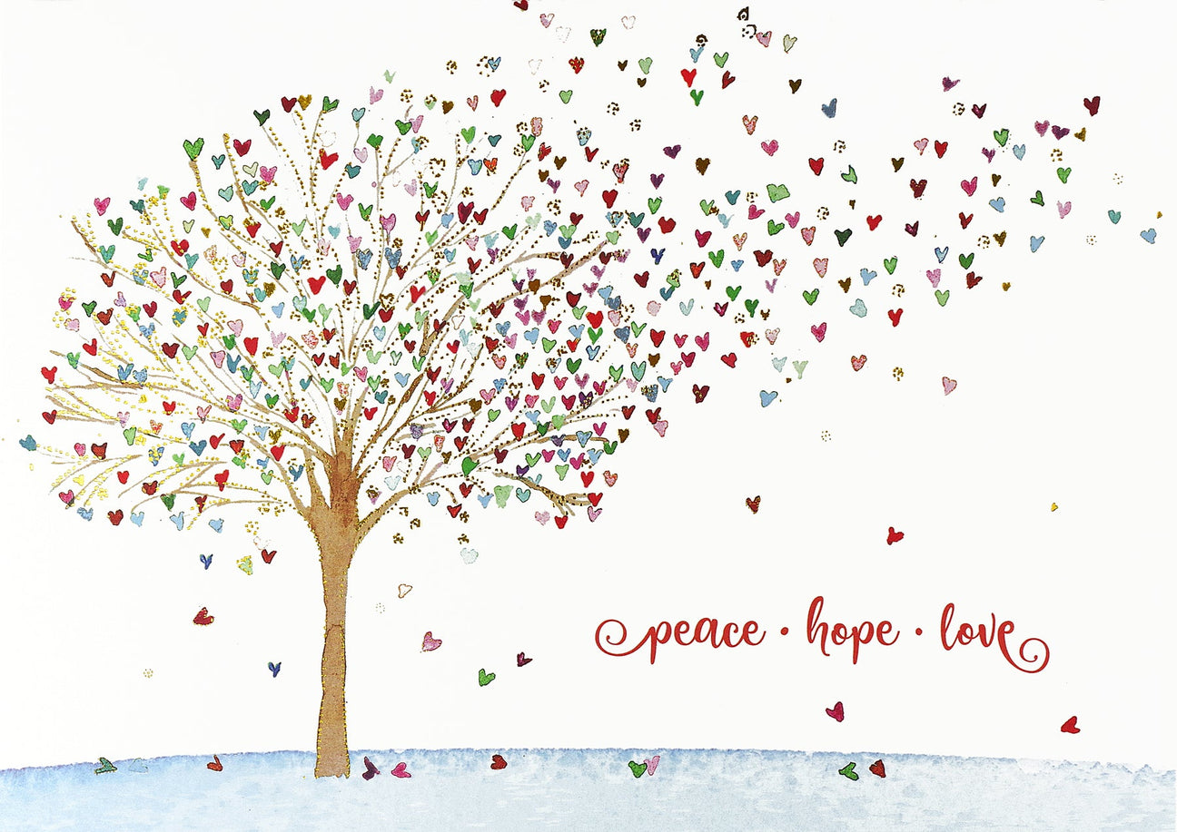 Festive Tree of Hearts Deluxe Box Holiday Cards