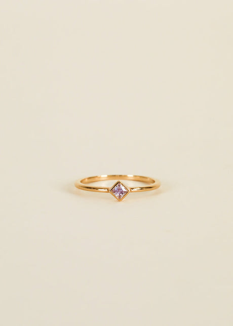 18K Gold Plated Dainty Lavender Diamond Shaped CZ Stud Ring