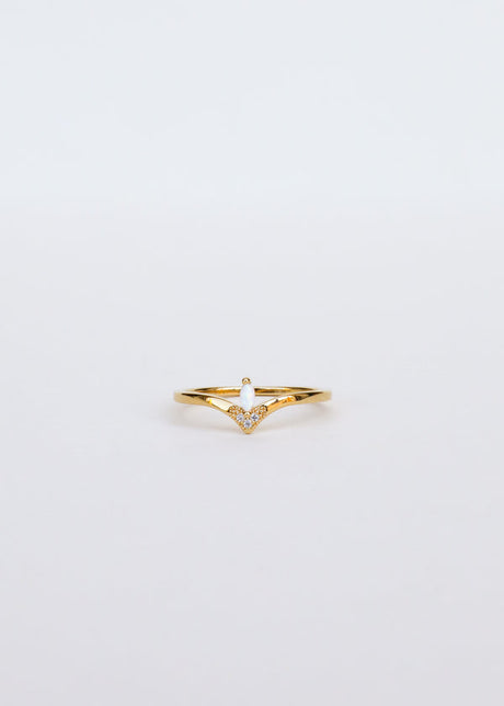 18K Gold Plated Dainty White Opal & CZ Floating Stud Ring